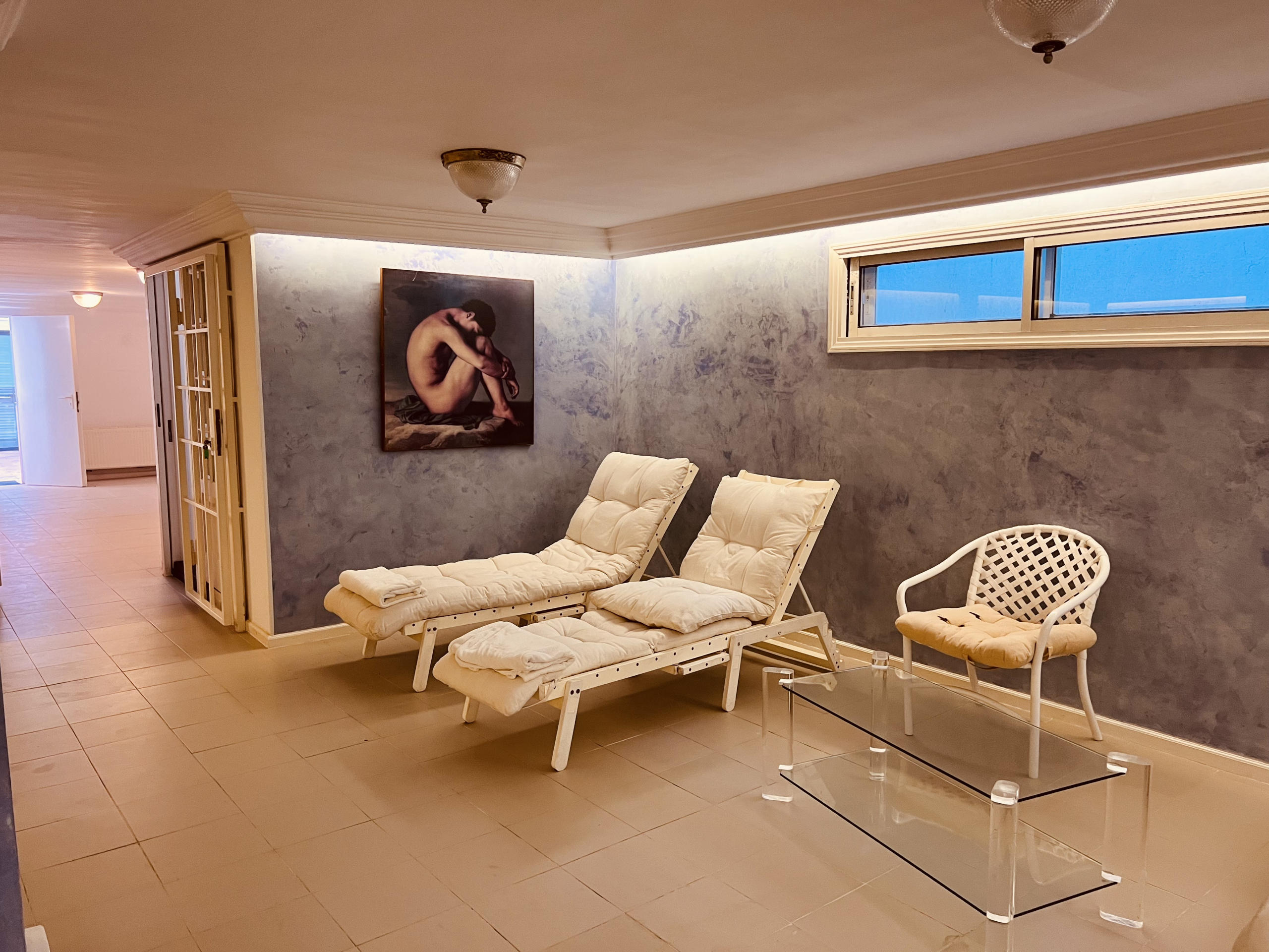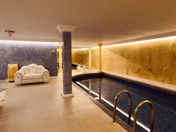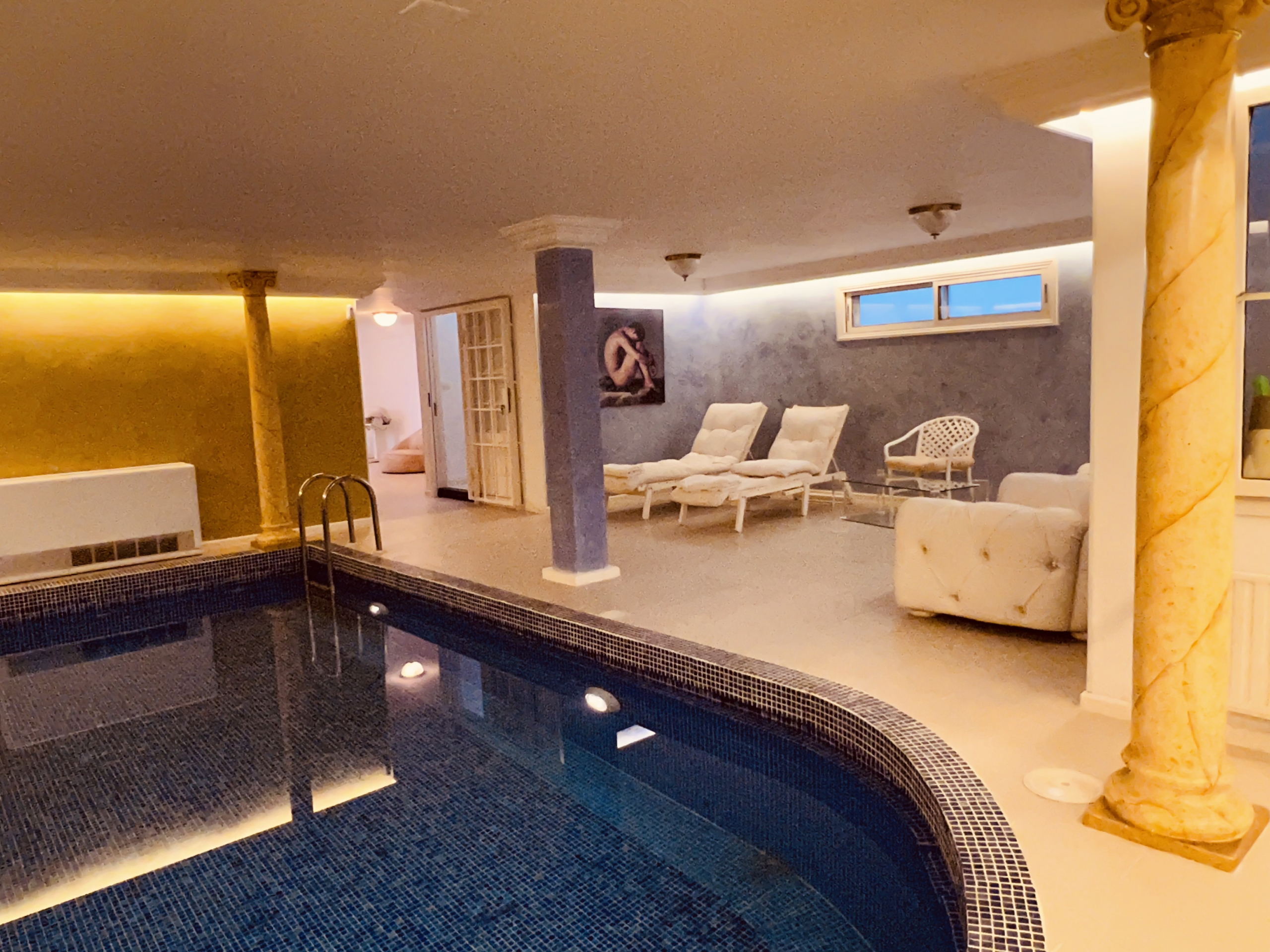 In the lower level we have the interior pool, 1 studio apartment with own bathroom, sauna, 1 complete bathroom and the garage.