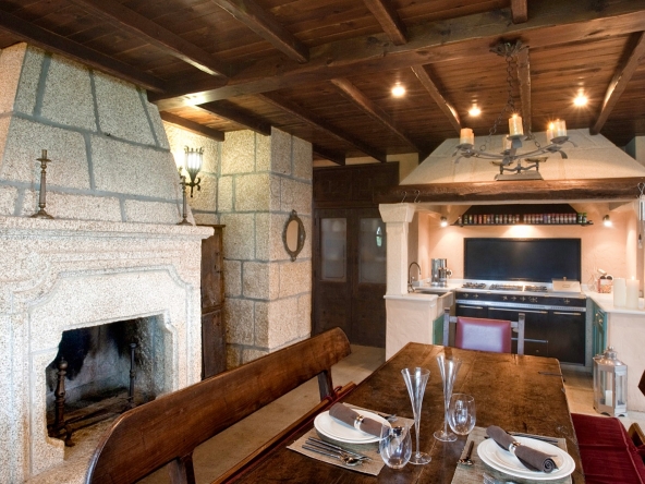 Stone basement decorated with vintage utensils. Library, reading room, music room, fully equipped kitchen, Garage, Swimming pool and a barbecue under a gazebo.