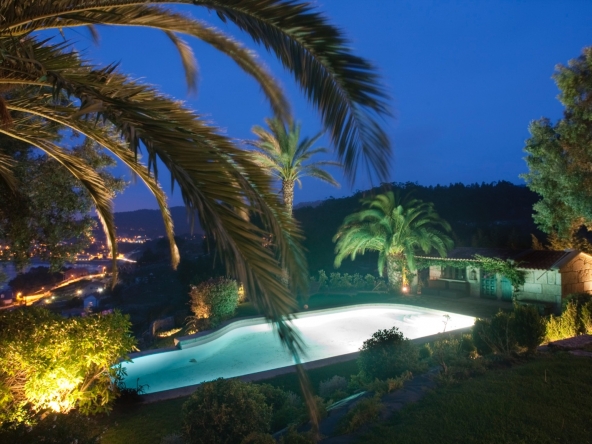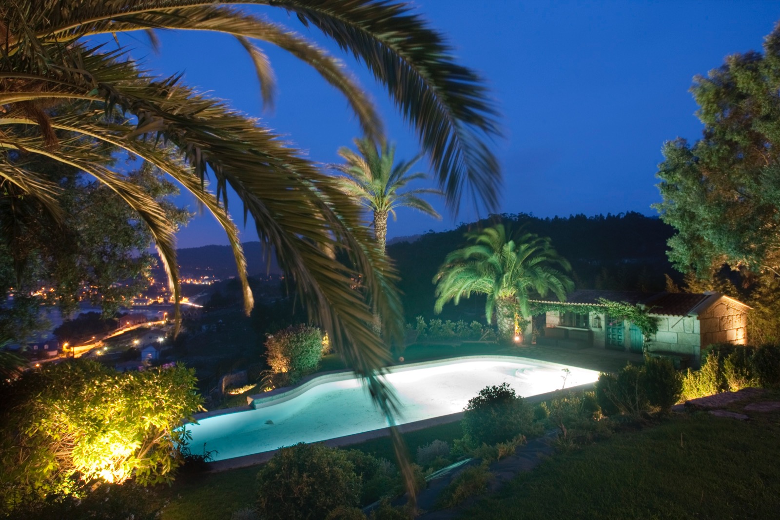 The 4200m2 garden is surrounded by forest, with an access through a singular road and with a magnific view to the Cies islands. This mansion is located on the top of a little hill in Cabo Silleiro, first coast line, near the urban centre of Villa Baiona. It is about 30 minutes to the Airport and 20 minutes away from the city of Vigo.
