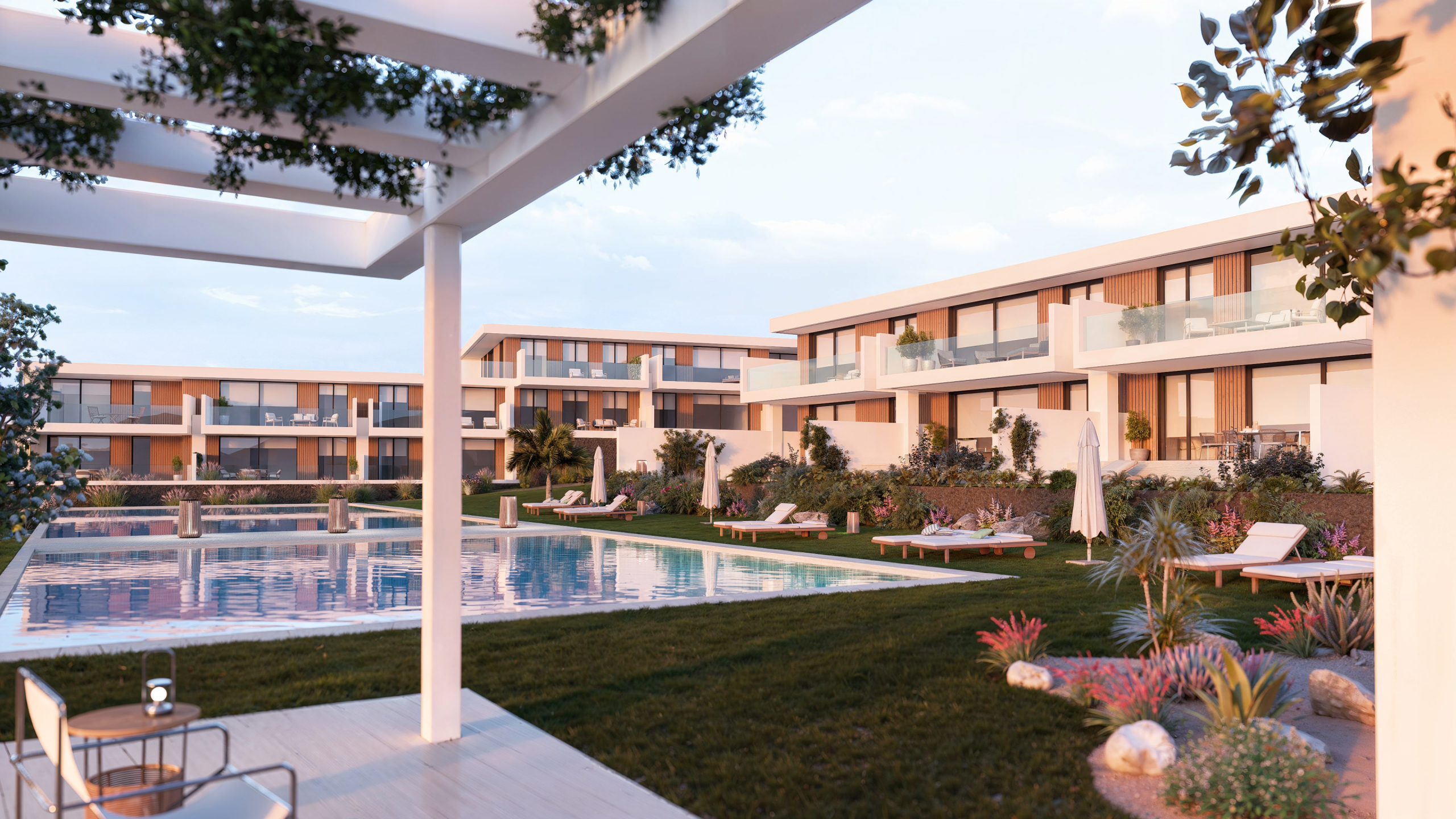 This new development presents 100 2 and 3 bedroom homes, each designed to maximize natural light and panoramic ocean and mountain views. Prices start at 290.000€. The private residential complex is located on a plot of land of